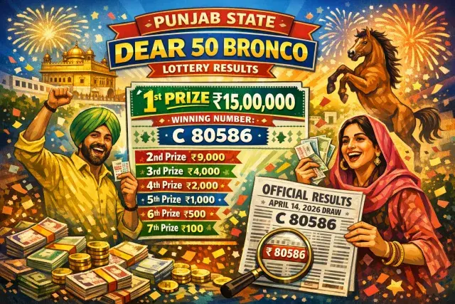 The Punjab State Dear 50 Bronco Tuesday Weekly Lottery draw held on April 14, 2026 has produced its official results, with ticket number C 80586 claiming the first prize of ₹15 lakh. Results have been declared by Punjab State Lotteries and are now available for public verification. Winners across all prize tiers are advised to cross-check their tickets against the official Punjab government gazette before initiating any claim.